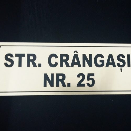 - Litere volumetrice neluminoase din polistiren vopsit, cu stiplex colorat in masa (rosu inchis) aplicat si suport din stiplex transparent cu autocolant tip imitatie de geam sablat aplicat pe spate.